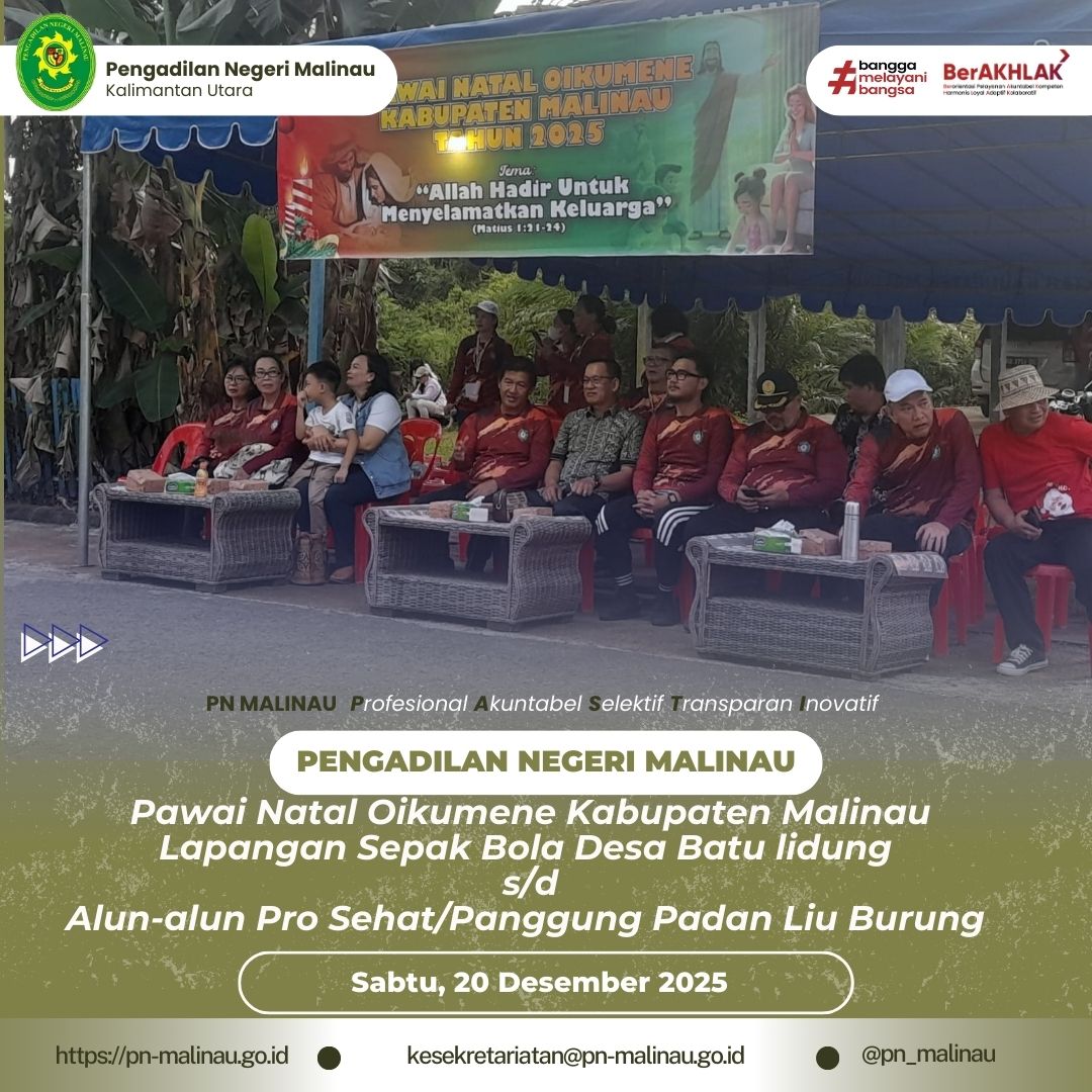 Pada Sabtu, 20 Desember 2025, Pengadilan Negeri Malinau yang diwakilkan oleh Bapak Rhendra Kusuma, S.H. menghadiri kegiatan Pawai Natal Oikumene Kabupaten Malinau Tahun 2025.