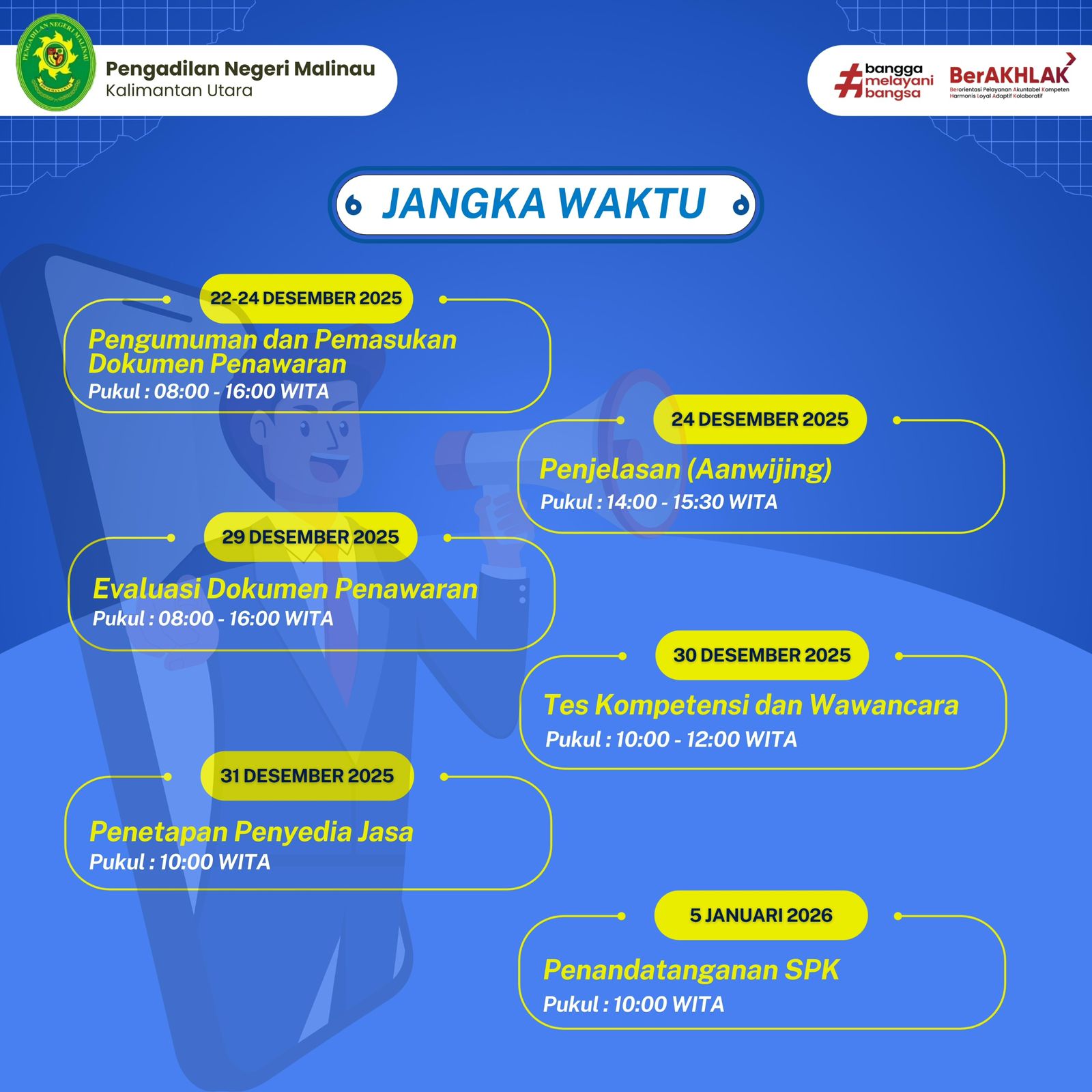 Adapun tahapan seleksi Pemberi Layanan Posbakum Pengadilan Negeri Malinau Tahun 2026 dilaksanakan dengan jadwal sebagai berikut: