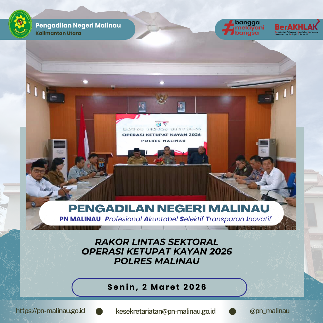 Ketua Pengadilan Negeri Malinau, Bapak Iwan Gunadi, S.H., menghadiri Rapat Koordinasi Lintas Sektoral dalam rangka persiapan pelaksanaan Operasi Ketupat Kayan 2026 yang diselenggarakan oleh Kepolisian Resor Malinau.