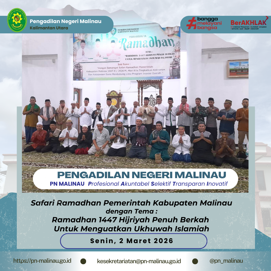 Ketua Pengadilan Negeri Malinau, Bapak Iwan Gunadi, S.H., menghadiri kegiatan Safari Ramadhan yang diselenggarakan oleh Pemerintah Kabupaten Malinau dengan tema “Ramadhan 1447 Hijriyah Penuh Berkah untuk Menguatkan Ukhuwah Islamiah.”